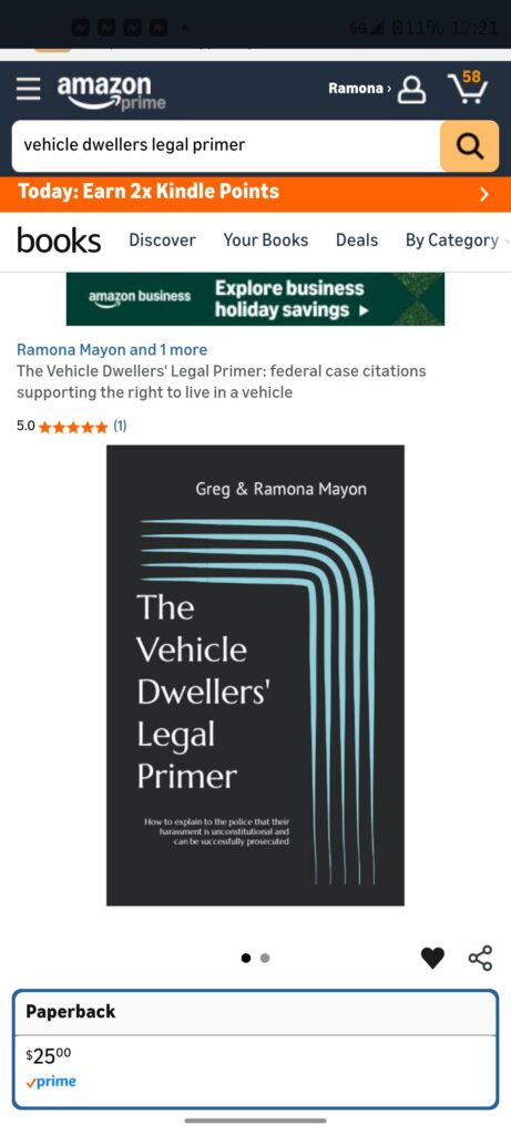 https://www.amazon.com/Vehicle-Dwellers-Legal-Primer-supporting/dp/1539496023