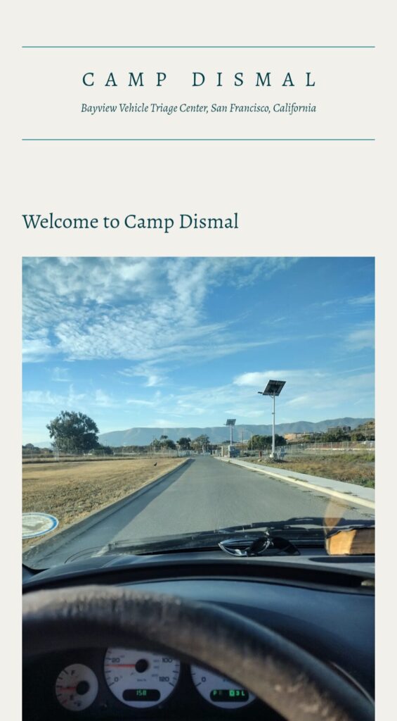 Below is the blog I made when I started the Tenants Union at the “Vehicle Triage Center” followed by a PDF with the media attention I managed to stir up.