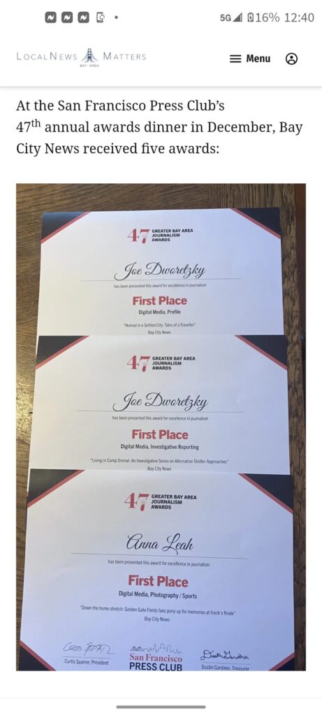 ✨ On Dec 4, 2024, the Reporter who wrote the investigative SERIES on the VTC beginning February 2022, as well as the below 8,000 plus word Profile on my fight to legalize my lifestyle and heritage as an American-born Scottish Traveller (maiden name is Robertson), he won first prize for both in the digital category at the 2024 Gala Awards at the San Francisco Press Club. ✨