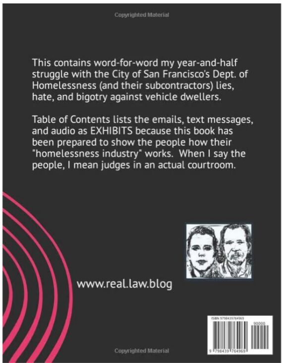 Below is the book I compiled about how the San Francisco Dept of Homelessness non-profiteers treated me BEFORE my internment at Camp Dismal against my will on August 9, 2022, promising repairs. Photo below is from that day, taken right after I agreed to go. You can see the front wheels are already on the tow truck.