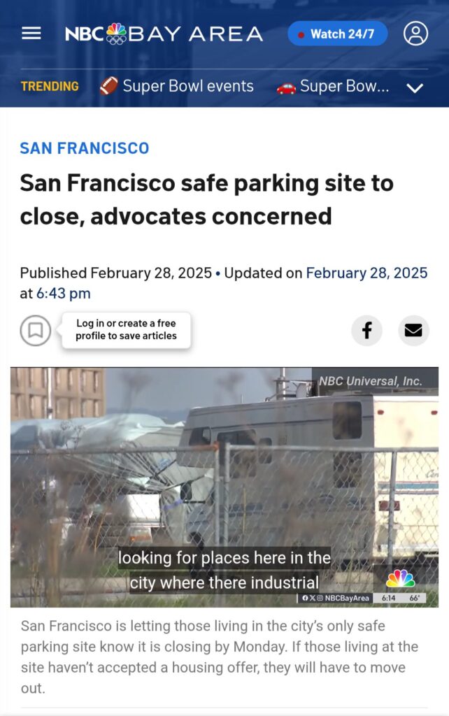 (2025) Another: San Francisco safe parking site to close, advocates concerned – NBC Bay Area