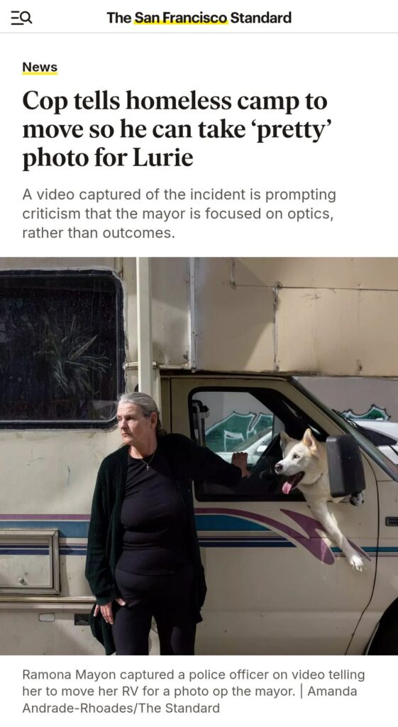 (2025) Article that resulted from the police harassment that immediately followed: https://sfstandard.com/2025/04/18/cop-homeless-pretty-picture/