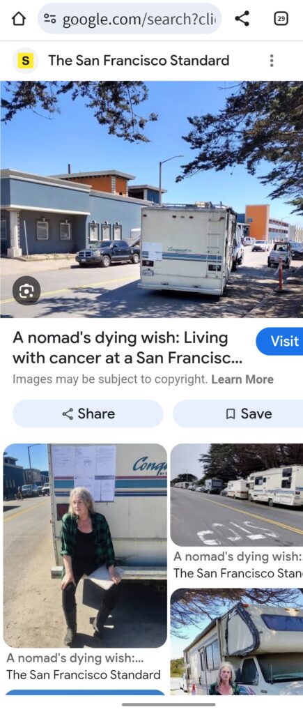 Above my personal photos, published in 2023 article below, from the day I was forced to move into the “Safe Parking” Program under threat of tow, August 9, 2022. I didn’t want to because it was a border zone property to Hunter’s Point Shipyard, one of the most radioactive SuperFund sites in America. I was on Sutter in-home hospice care at that time. Again, no choice.